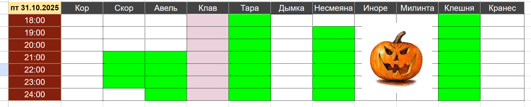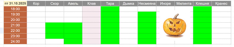 Таблица для записи на игру (вашего свободного времени) <-- Записывайте своё время здесь!