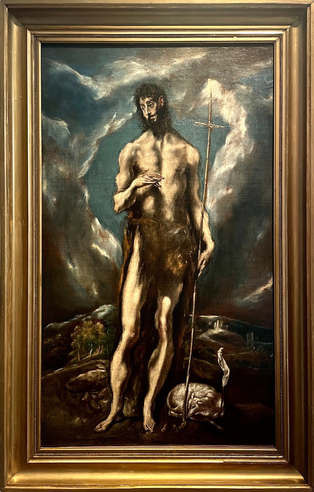 | Возможно вы не знаете, но никто не рисовал мужчин с маникюром лучше Эль Греко (вот уж чье имя безбожно сократили так это Доменико Теотокопули) А сколько изящества, тонкости, звонкости в этом бородаче. Несмотря на то что он путешествует с едой - мирная овечка, что уже давно сдалась, судя по осунувшемуся белому флагу, что она сжимает копытцами, мужчина не выглядит упитанным. А какой необычный фасон его набедренной повязки, она со шлейфом. И даже тростниковый крест, что он казалось бы несет, только подчеркивает хрупкость фигуры на переднем плане.